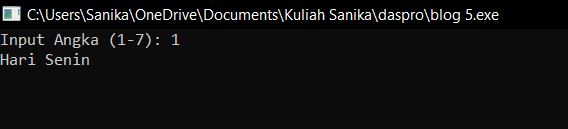 | Output diatas dihasilkan karena data yang kita masukkan memenuhi kondisi peratama ,yaitu a > 0. |
